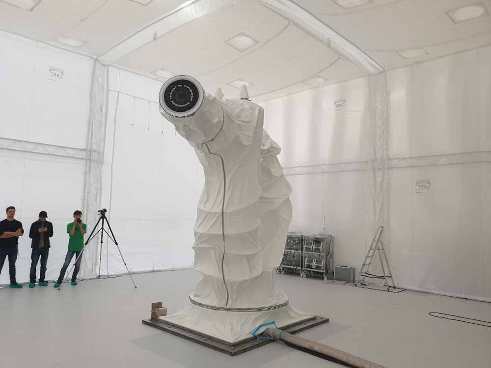 Zusätzlich kann das Schutzsystem mit einem Unterdruck ausgestattet werden, zur Verhinderung von austreten der Partikel des Roboters.